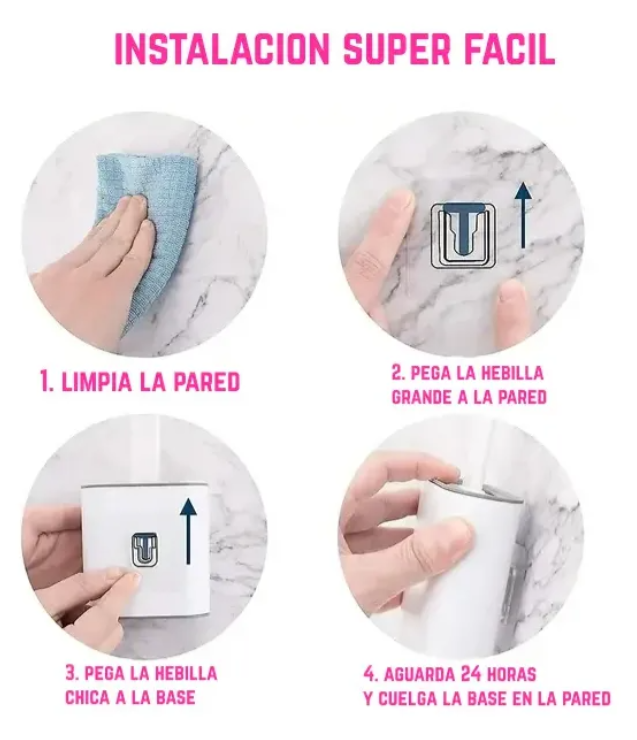 La base SE PUEDE adherir a la pared (adhesivo incluido) y así ahorrar espacio.