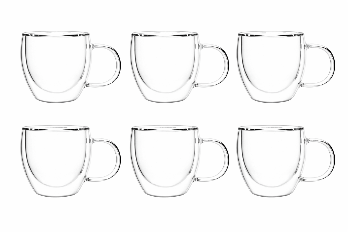 Pack x6 tazas doble vidrio con asa 120 cc