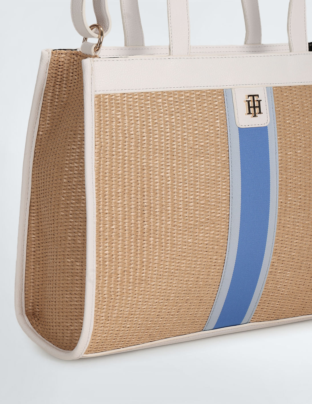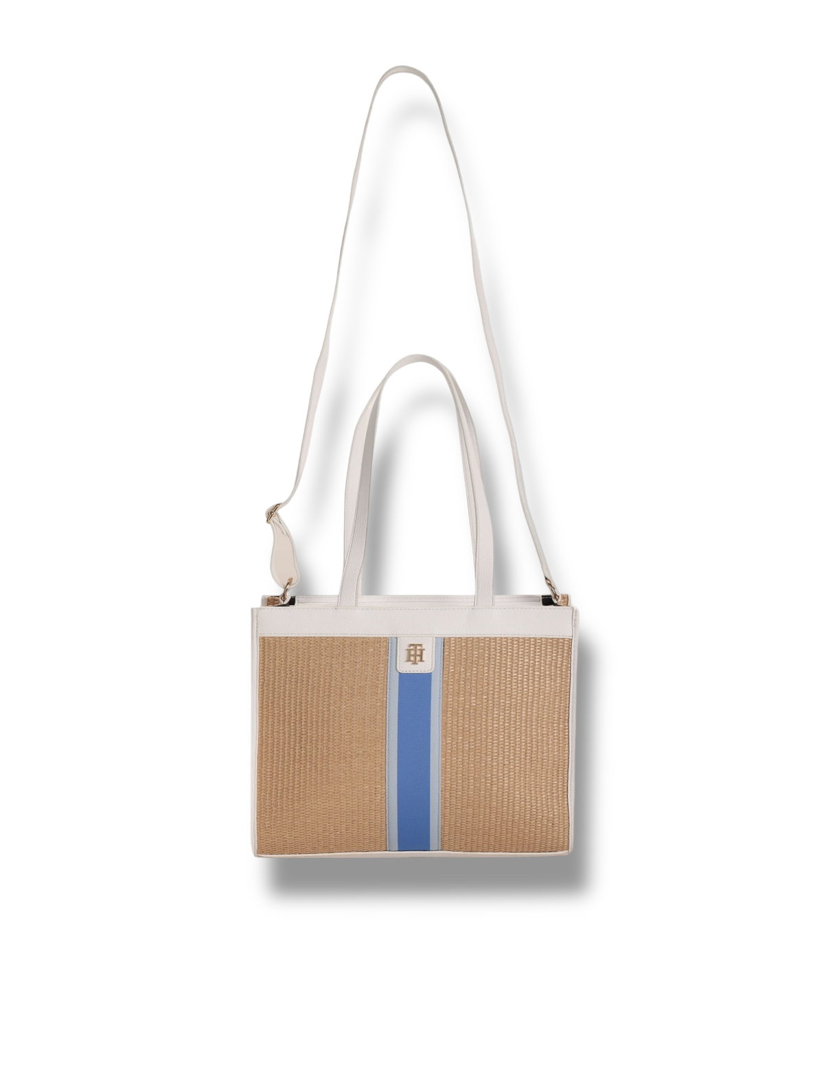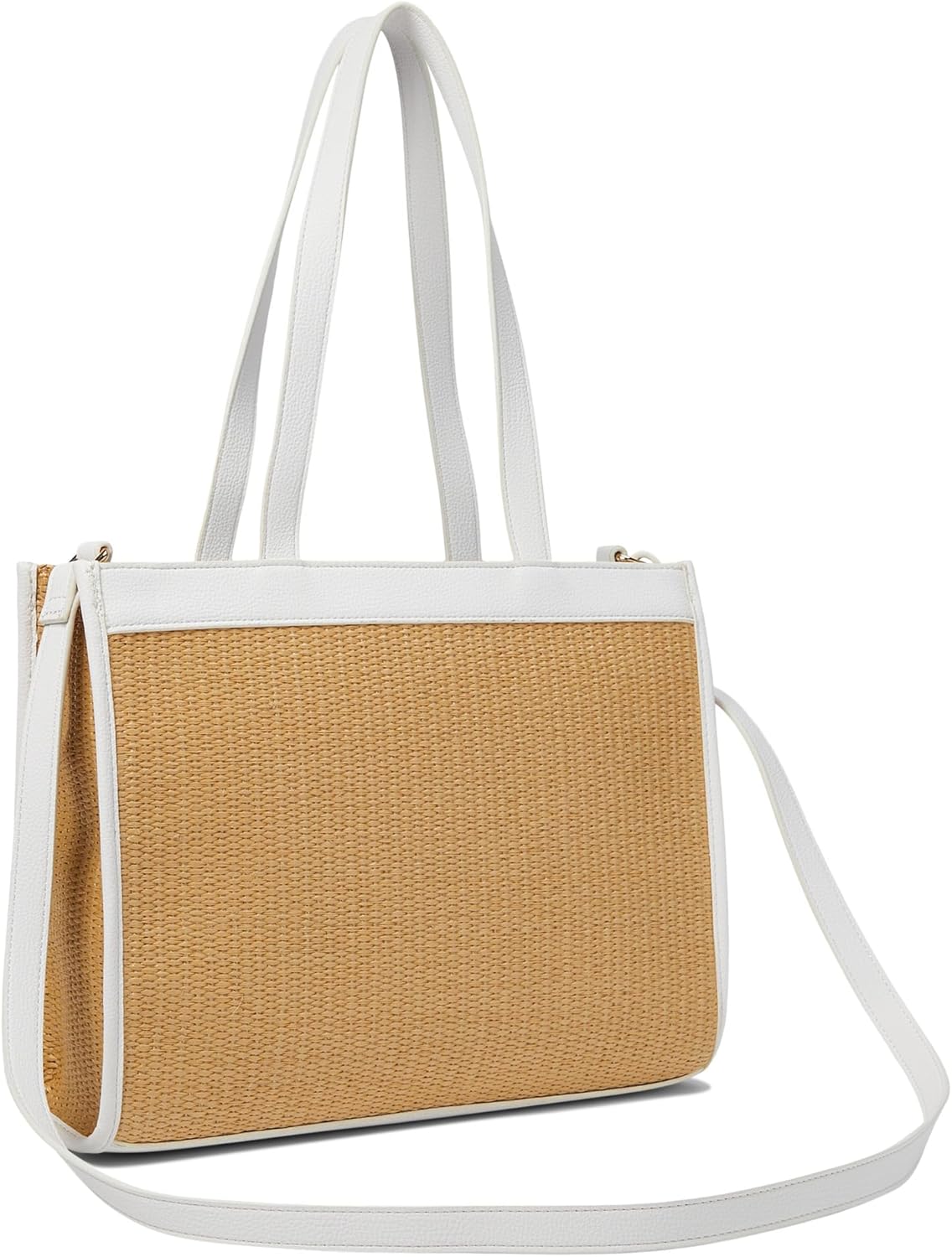 • Tonos beige, tramado estilo paja, con detalles en cuero sintetico optic white