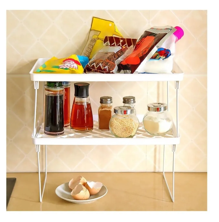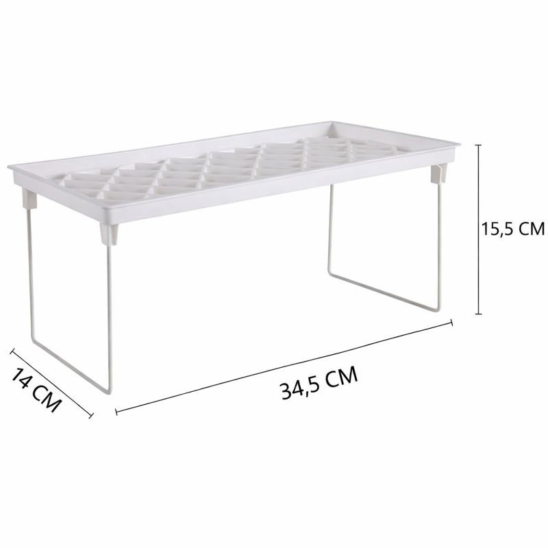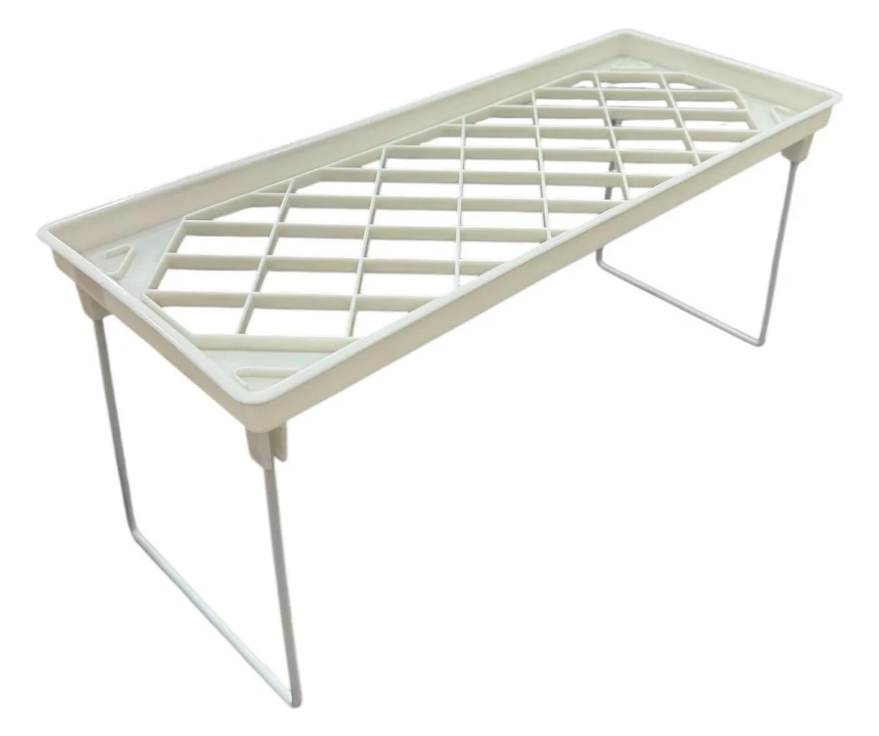 Estante para alacena o bajo mesada, con patas rebatibles; apilables entre si
