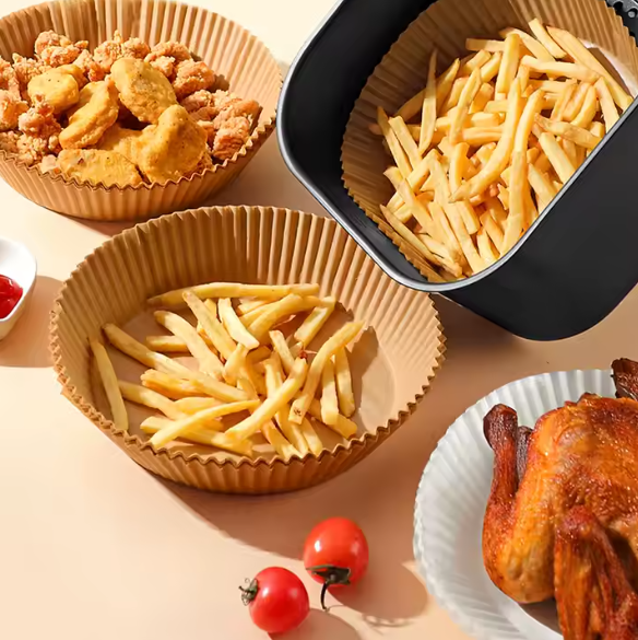 - Mantén tu freidora limpia y disfruta de una cocina más saludable con estos prácticos papeles antiadherentes. Diseñados para evitar que los alimentos se peguen y reducir la acumulación de grasa, son ideales para cualquier tipo de preparación.